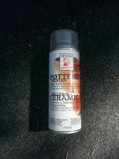 Usando el sellador de olla de barro, rociar el interior y fuera de los 5 montado potes. Rocío sólo el interior de la base olla, la olla de 14". Deje que se seque.