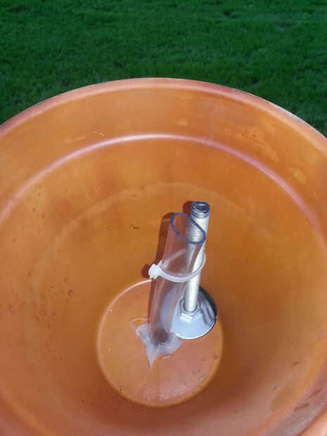Pase el tubo de vinilo el orificio de drenaje de las macetas. Fijación de uno extremo en la salida de descarga de la bomba y asegúrese de que la bomba se ajusta para arriba bajo el bote base 8".