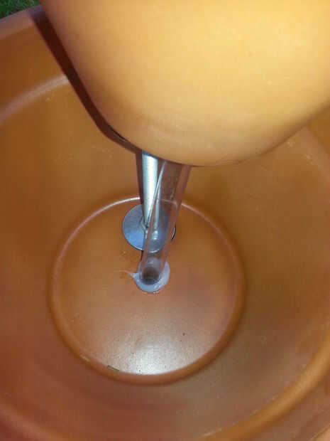 Silicona alrededor del tubo en la parte inferior de cada maceta y deje que se seque