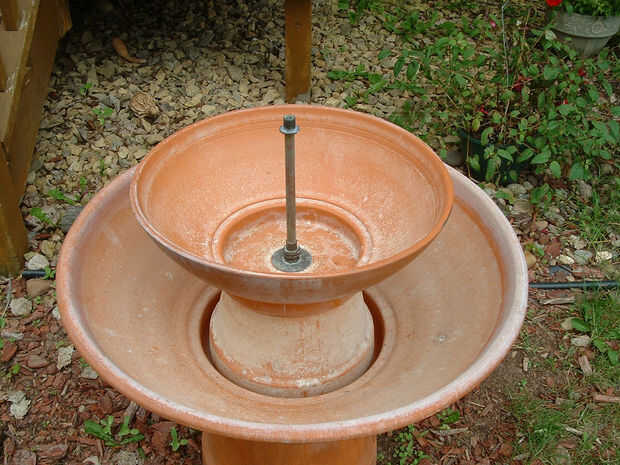 Un hombro buje en la parte superior del tubo elevador soporta un plato de barro pequeño.