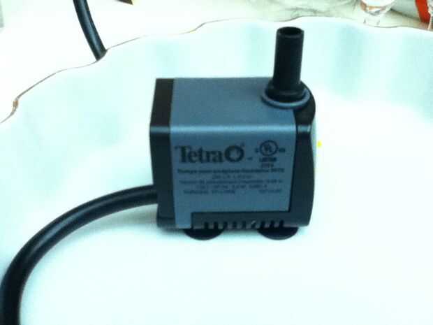 Usé una bomba comprada de Menard específicamente para fuentes pequeñas y mesa. Era cerca de $15, estoy adivinando que más otras ferreterías llevaría algo similar por un precio similar. La bomba de prueba antes de empezar a hacer su fuente
