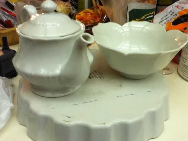 Mi tetera, taza, tazón de fuente y cuenca fueron todos hallazgos de tienda de segunda mano. Fue el más duro encontrar una tetera small-ish, de modo que le recomendamos comenzar con eso. Utilice el tamaño de la tetera para determinar la cuenca. Necesitarás un recipiente para ocultar la bomba, así que asegúrese de que encaja en la cuenca, junto con la taza de té.
