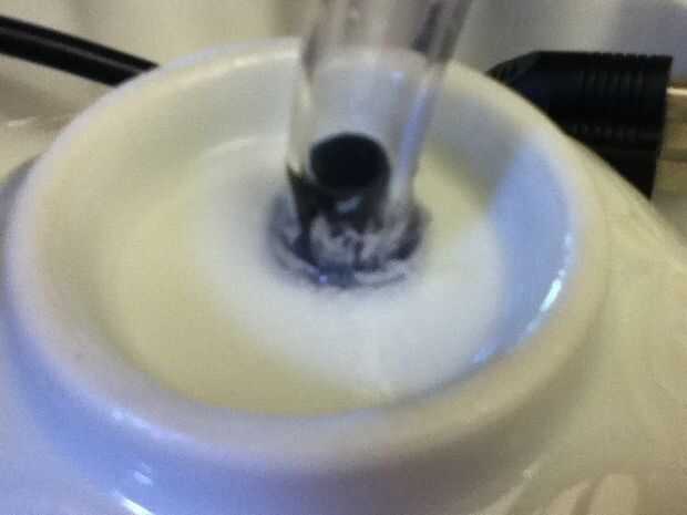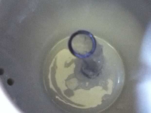Mi primera acción fue sellar el área alrededor de la tubería y el tazón de fuente. Poner el tubo de la bomba con el recipiente en la parte superior y había marcado donde vino a través. Quitar la bomba y sellaron el área que había marcado. Sellador de silicona tiene un periodo de curado de 24 horas, así que dejé mi recipiente y el exterior del tubo a la curación, puesto que el sellador olores nocivo.
