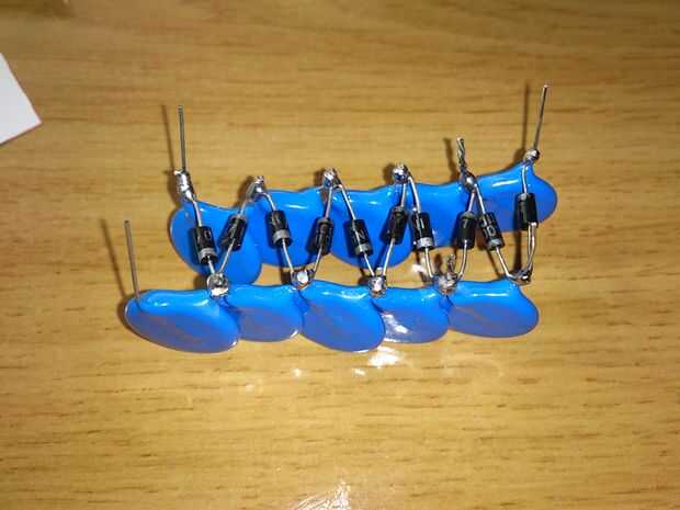 NOTE: UF4007 diodos son muy recomendables, este que es más rápido que el 1N4007, lo que significa su multiplicador será más eficiente, cambiar los diodos 1N4007 de mi multiplicador por el UF4007 y al instante noté sobre un 40-30% aumento en el rendimiento.