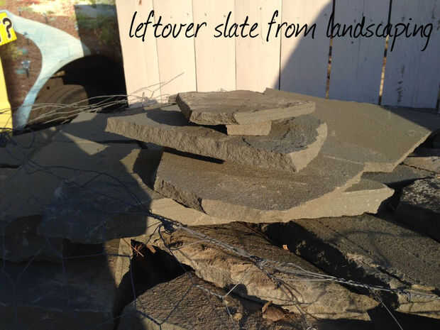 - Algunos trozos de pizarra que sobra desde el diseño de paisaje