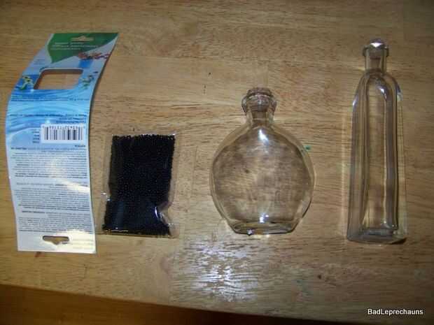 , Tenemos negro y azul "gemas de agua" de un local de artesanías tienda por $2.99. Las botellas de "Michael s", o cualquier lugar. Uno vino de ejército de salvación para un cuarto!