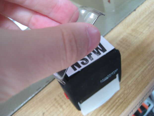 Estampar un sello y fíjelo a la parte superior de su sello para que sepas qué marca es y de que lado está.