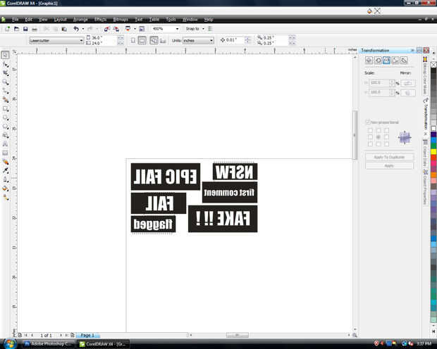 Si quieres empezar tu archivo desde cero, hacer sus plazas el tamaño de la superficie de sello y luego llenarlos de prueba. Luego de hacer el texto blanco y el relleno de los cuadrados negro. Una vez que ha hecho esto, invertir la imagen entera para que el texto se lee al revés.