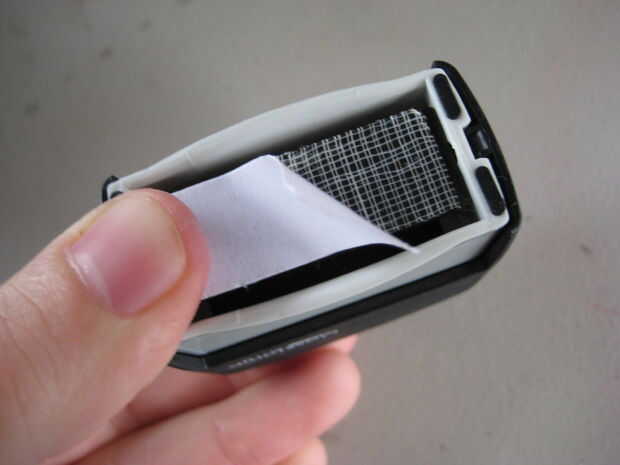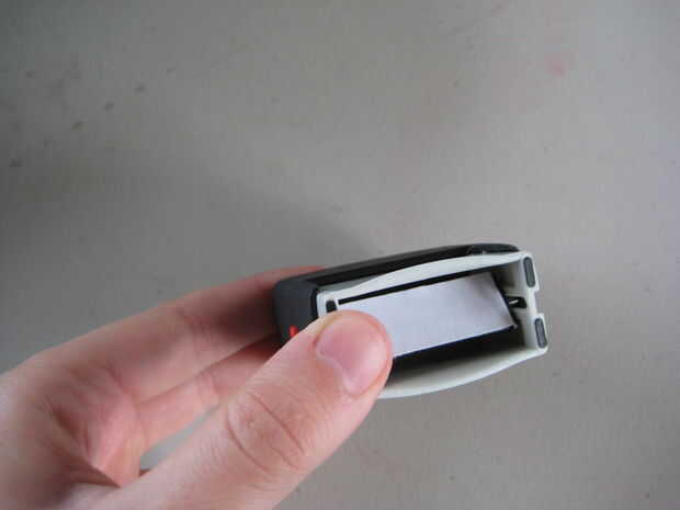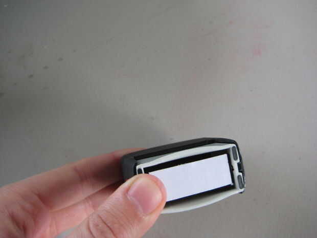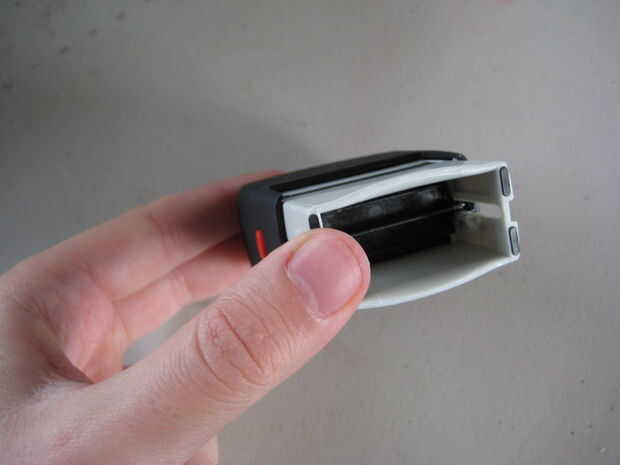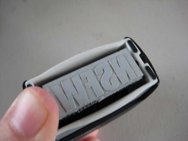 Asegúrese de que sus sellos estén completamente secas y montarlos en el cojín de estampilla uno mismo-que entintan por despegando la tapa adhesiva y presionándolas firmemente en su lugar.