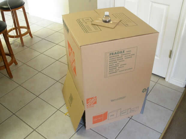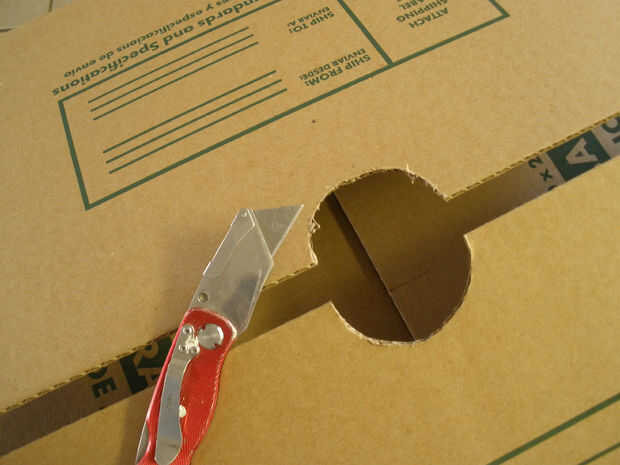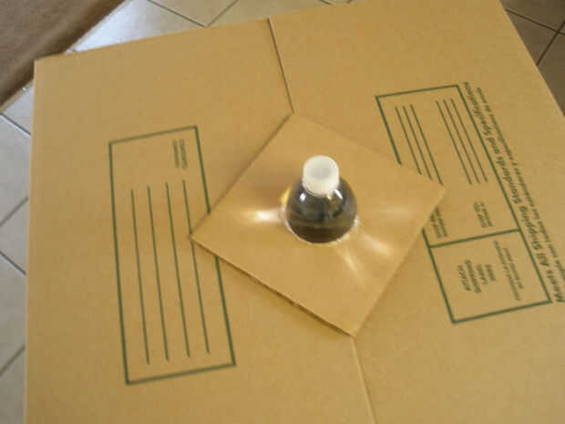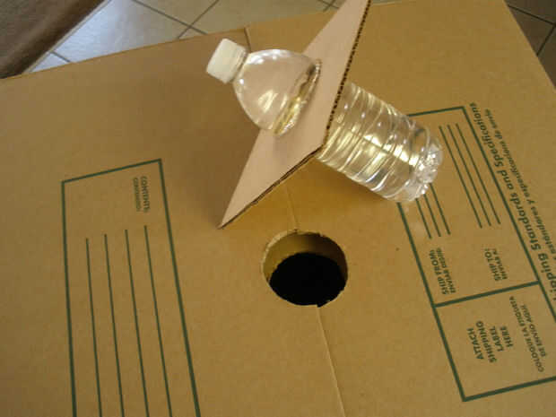 3. corte un agujero en el centro de todas las solapas superiores del mismo tamaño que la botella de agua.