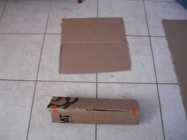 El siguiente paso es más complicado, pero no por mucho. El siguiente cuadro y cortar un lado. Cortar la parte por la mitad. Cada mitad debe ser enrollado y pegado. Este es el comienzo de las torres de apoyo.