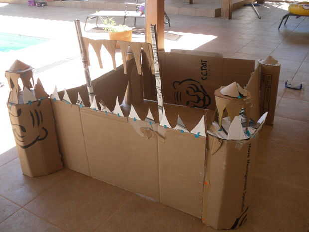 hice esto para mis hijos jugar en interiores en invierno.Los pliegues de caja plana para fácil almacenamiento cuando no se usa.La "Bombilla Botella Solar" luz dentro de la caja y mantener juntos.La puerta es una de las solapas de la caja en la p