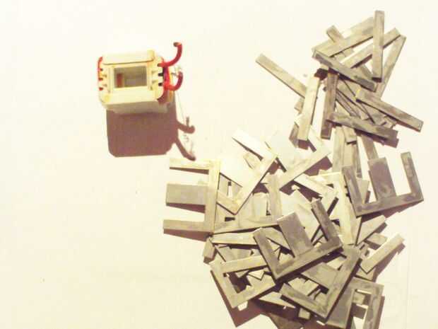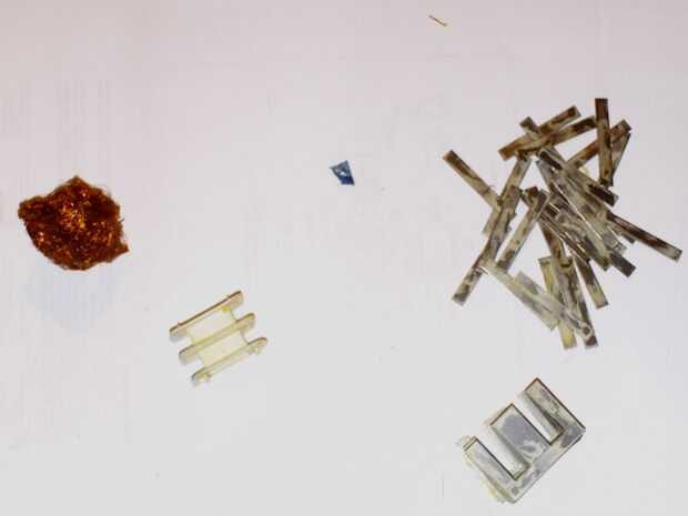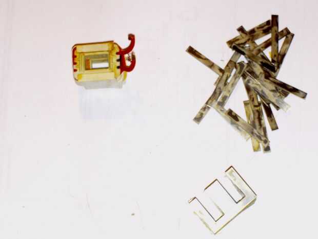 Para separar las capas utilizan un cuchillo de la caja para romper aparte la primera capa, y luego venció la pieza a con un martillo y un destornillador. Una vez que se rompe libre se puede sacar con las pinzas.