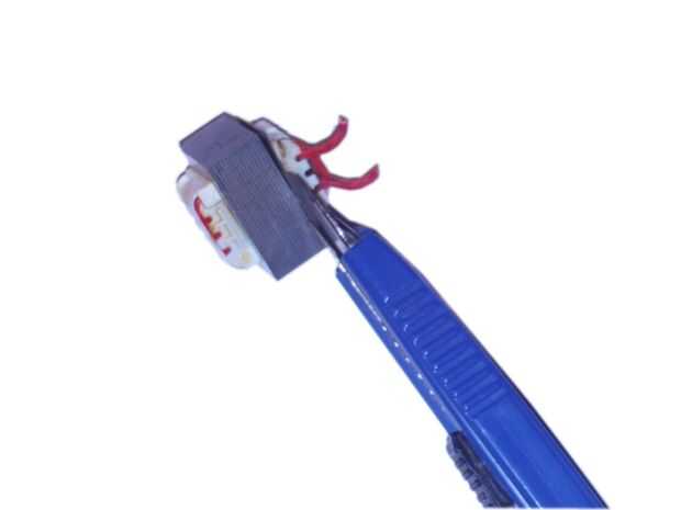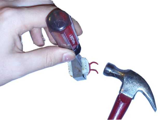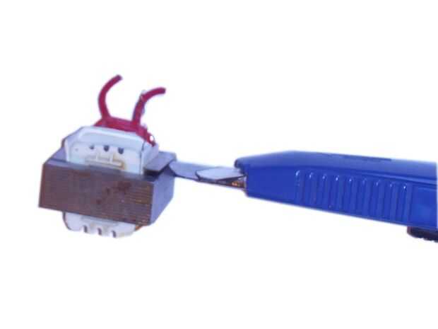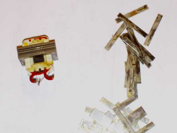 Una vez que consigue el primer par de capas, poner el transformador en una superficie dura y golpea los lados de la base con el martillo para ayudar a romper el barniz suelto. Entonces debe ser capaz de llegar el resto de las piezas hacia fuera con el cuchillo.