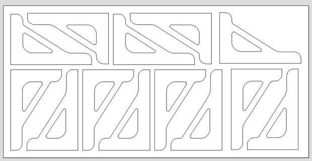 Incluí un dxf de un soporte de 12 x 8 para la importación y un jpg que muestra el diseño de la pieza una 48 "x 24" madera contrachapada. Puedo ajustar a 13 de ellos. El archivo zip contiene un .crv (archivo de Vcarve) con el diseño de una hoja de 48 "x 24".