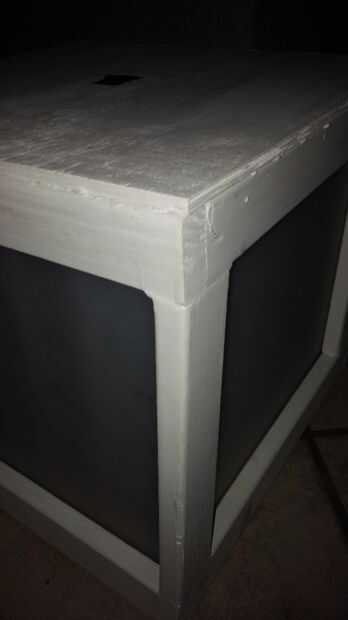 2. utilizar la pintura Exterior blanco para pintar el cuadro entero. Esto ayuda a ocultar imperfecciones. Si usted quiere conseguir real lujo utiliza una cartilla. No lo hice y salió gran. No necesita imprimación con esta pintura de la casa. La pintura de un galón es cara, pero venden las muestras que trabajaron. Incluso no utilizar un medio frasco. Usted puede pintar cualquier color usted desea. Sólo pensé que blanco se vería limpiado y los LEDs le daría los colores que se merece.