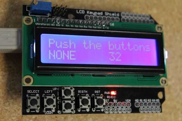 La forma más sencilla de hacerlo es utilizar el ejemplo de Arduino AnalogReadSerial, y ver qué valor obtienes por cada pulsación. La mayoría LCD pantallas uso pin A0 para los botones. Asegúrese de cambiar el valor de retardo en AnalogReadSerial por lo que se puede ver qué valores aparecen en el monitor serie. Hay seis lecturas que a la hora, las cinco lecturas de los botones, además de la lectura que se obtiene cuando se presiona ningún botón.