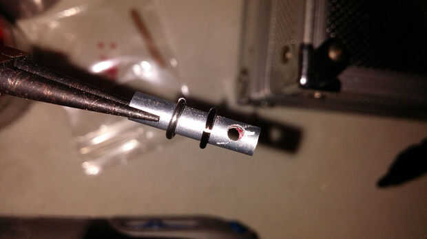 Después de que ha hecho la empuñadura, use una herramienta rotatoria o taladro hacer un agujero a través de la empuñadura cerca de uno de los extremos. No consiga demasiado hasta el final aunque, usted todavía necesita hacer los guardias.