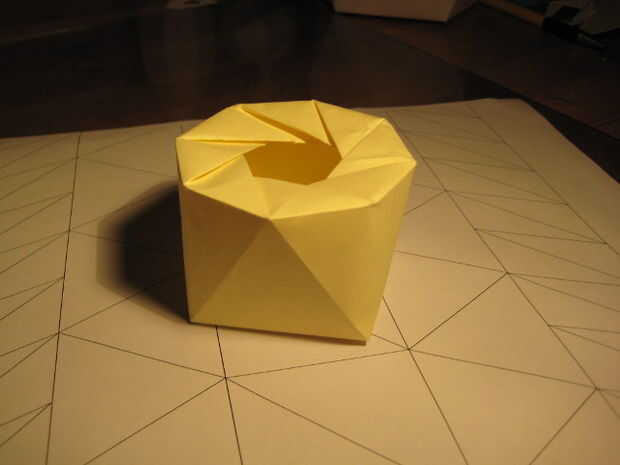 Como he mencionado antes, el método de Fujimoto es una de las soluciones más elegantes sin pegar y cortar. Ahora te demuestro cómo doblar una copa hexagonal de 6 lados. Es más fácil retirarse de la Copa de cara 12 hiperboloide.