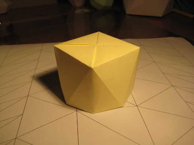 El mismo método se utiliza para las otras formas de geometría. Si estudiamos el patrón del antiprisma, la parte inferior del prisma es cambiado de puesto por 1/2 longitud y los lados del objeto se convierten en triángulos equiláteros, por lo que resultan como un antiprisma. La estructura plegable de cierre es equivalente a la parte media inferior de la parte inferior.