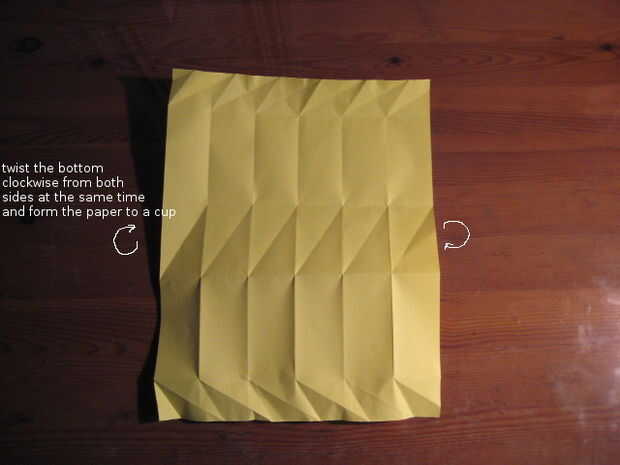Comenzar con la parte inferior del pliegue papel. Gire de ambos lados al mismo tiempo y modelo de una taza.
