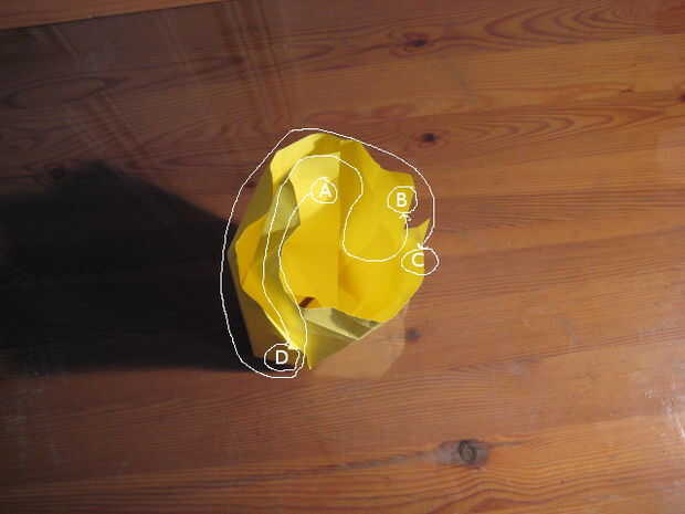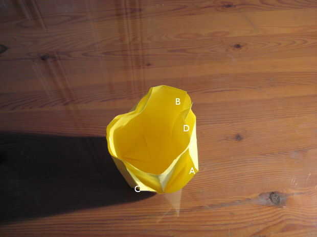 La foto muestra la parte superior de la Copa. Desenvolver y llevar de A C y D al B (va automáticamente)