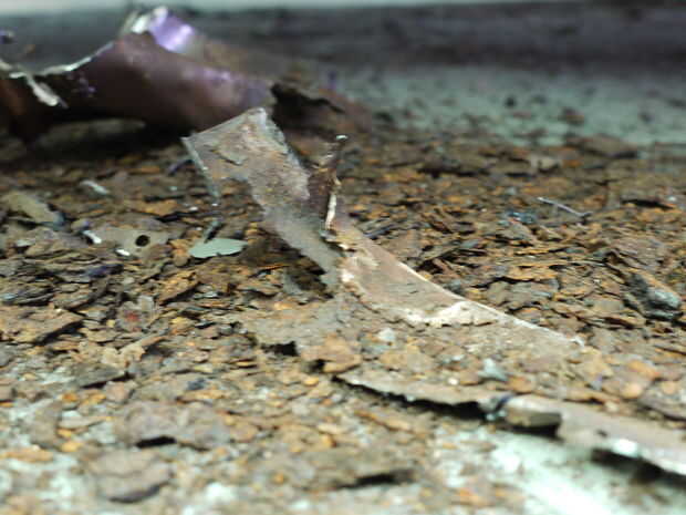 -barrer las migas oxidadas bajo el proyecto de restauración de coches, filtrar y limpiar un poco por lo que sólo tiene bonitos rojo marrón óxidos chips