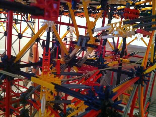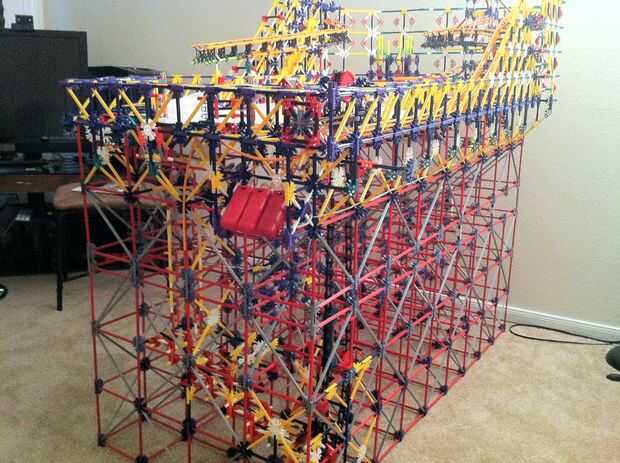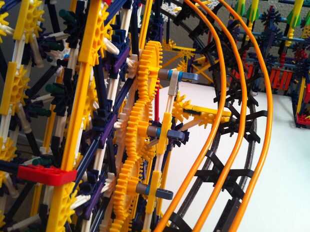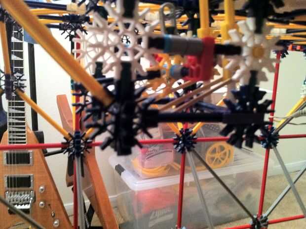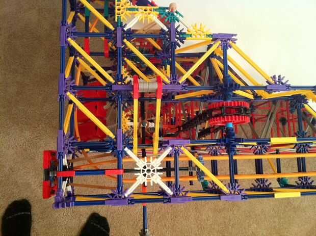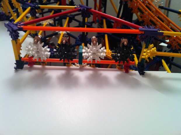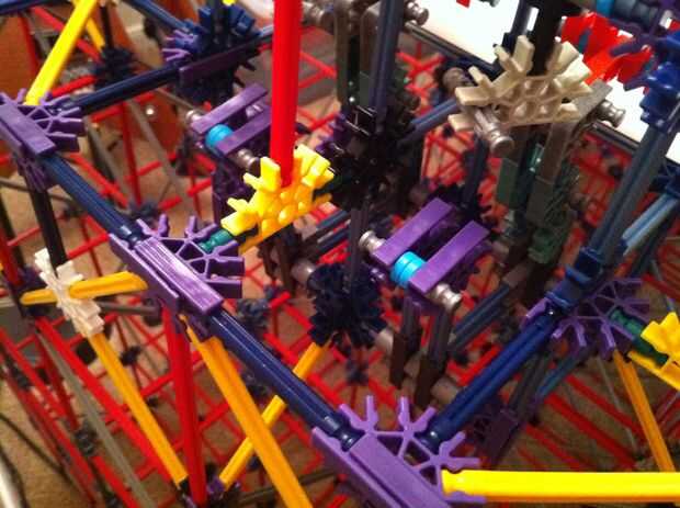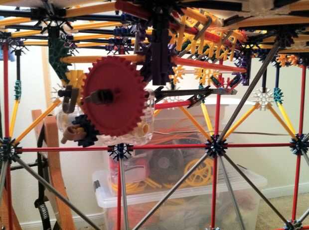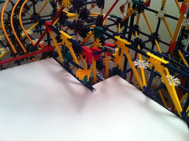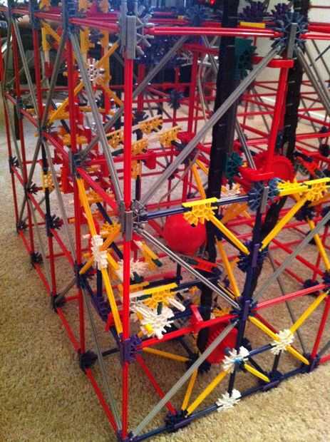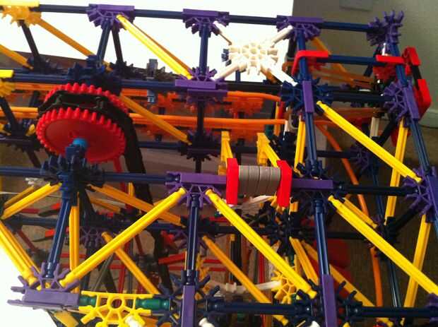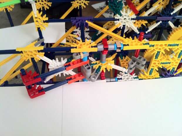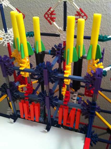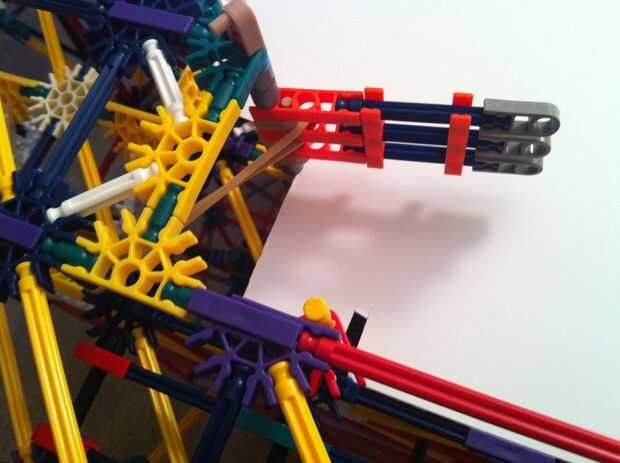 Todo funciona estupendamente! La bola es más lenta de lo que esperaba, pero es todavía capaz de activar los objetivos tras el impacto. La mayor parte de la máquina es continua, pero los lanzadores de cohetes y catapultas son reset todo manual. Con motores de velocidad constante será muy difícil idear un mecanismo auto-reset que no interfiere con los mecanismos de disparo.
