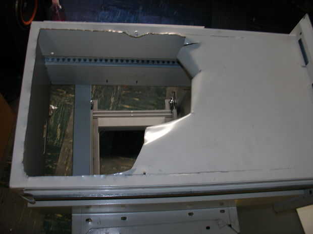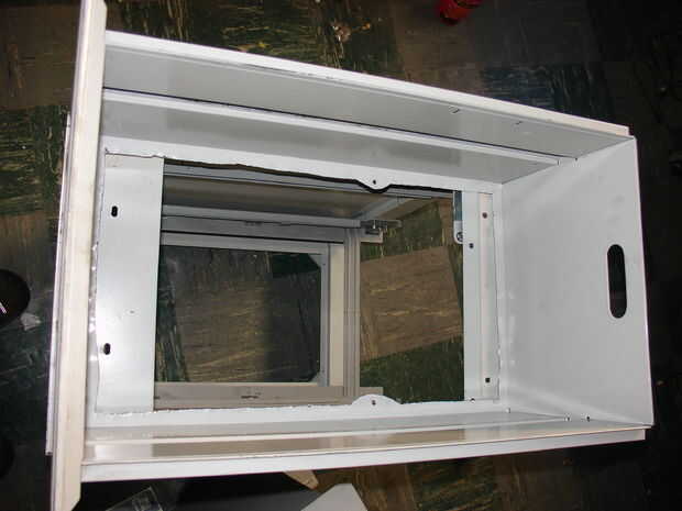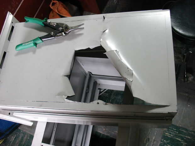 Corte el centro de los cajones que se utilizará para la carne usando tijeras, dejando aproximadamente 1" alrededor de los bordes de la parrilla resto en y una ficha o dos para empernar juntas. Ajustar o cortar la parrilla para colocar y asegurarlo con las arandelas y tornillos y tuercas, las arandelas intercalando la parrilla entre algunos peldaños y la pestaña izquierda alrededor de la parte inferior del cajón.