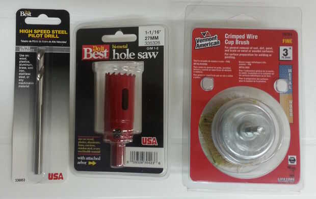 3 tornillos de 1/4 "x 2" con tuercas y arandelas.