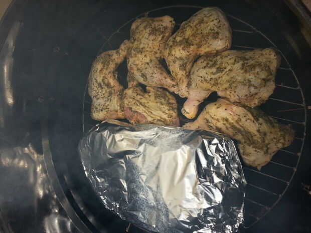 7. espere hasta la temperatura suba hasta unos 20° F por debajo de la temperatura final que desee, por ejemplo si desee ahumar a 225° F espere hasta la temperatura llegue a los 205° F.
