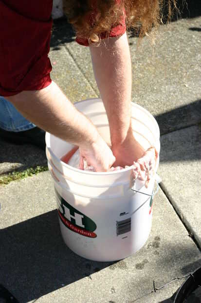 Nosotros en salmuera nuestra Turquía antes de fumarla. Esto es opcional, pero recomendamos encarecidamente el propósito principal del proceso de salado es hacer el pavo más jugoso, y fumar un pavo durante 10 horas tiende a seco hacia fuera un poco más que algunas otras técnicas de cocción. Utiliza una salmuera consistente en 2 galones de agua, 1 taza de azúcar y 1 taza de sal. Esto fue suficiente salmuera para cubrir el pavo en su bote de pintura de 5 galones. Nosotros en salmuera el pájaro durante la noche, alrededor de 9 horas.