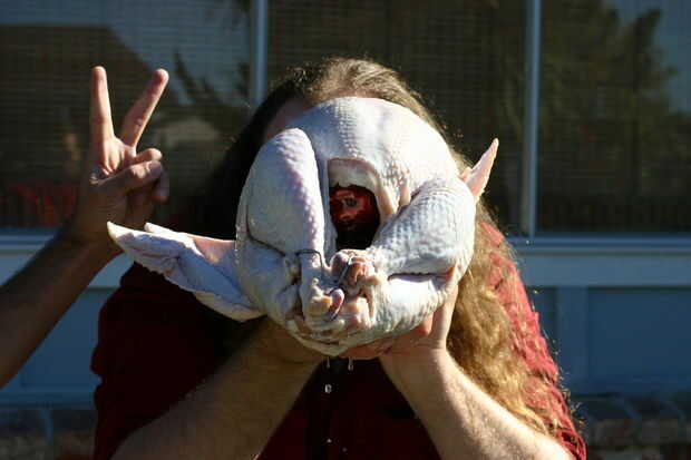 Porque la cocina de un fumador se realiza por transferencia de calor por convección desde el humo, queríamos maximizar el flujo de humo a través de la Turquía con el fin de minimizar el tiempo de cocción y cocinar el ave tan uniformemente como sea posible. Para mejorar la dinámica de flujo de gas de la superficie de Turquía, quitamos las aletas del exceso de piel y grasa que oculta las aberturas de la Turquía, y hemos ampliado el paso entre la cavidad del cuello y la cavidad principal del cuerpo, la idea es permitir que el humo fluya libremente por el interior del Ave. También dejamos el pavo completamente untrussed y como extensión hacia fuera como sea posible, para aumentar su superficie efectiva.