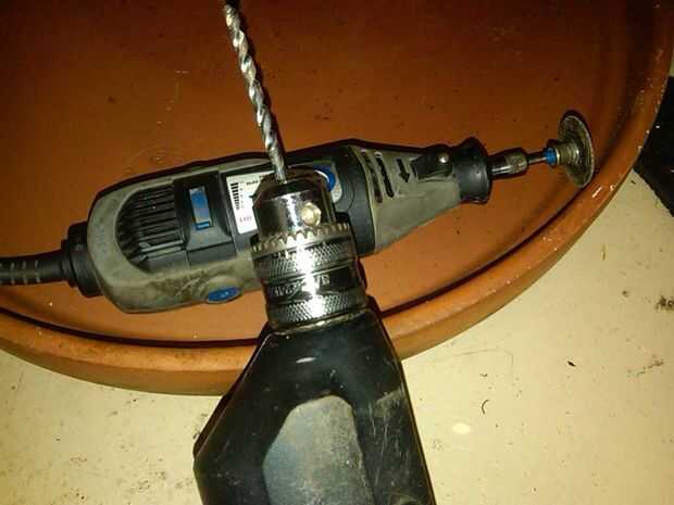 Dremel con una fresa. Esto se utilizará para cortar el remache de la manija sobre la bandeja.