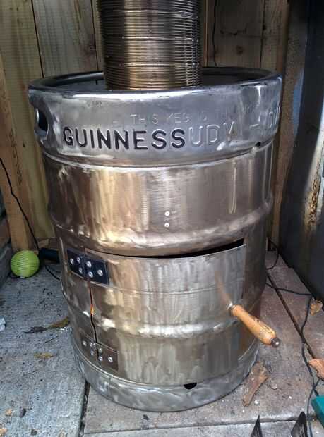 Pub local me dio esto y sacó la amoladora angular y cortar una puerta y un hueco de la chimenea se. Hecho de acero inoxidable tan muy robusto y no aherrumbrará. Sé que no es el juego más atractivo para arriba pero es muy efectivo y se hizo completamente gratis. Si quieres gastar una fortuna en bastante entonces adelante pero voy para practicidad y funciona muy bien.