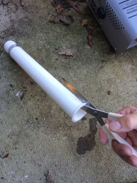 Vale. Para ser honesto, esto es donde he tenido problemas. Pensé que encajaría en el tubo que sale del pedestal sobre el tubo que sale de la máquina de humo. .