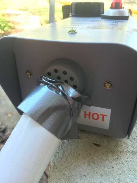 5. el fiel respaldo! CINTA ADHESIVA PARA CONDUCTOS. El cielo dividido, el sol con vigas de abajo como envolvió la conexión en cinta. YEP! Cubrió el tubo muy bien... pero al parecer la gente que hizo la máquina de humo en algún tipo de teflon había recubierto. La cinta de conducto... sí cinta del conducto, que se pega a todo, no pegue a este. ARGHHHH!