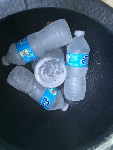 1. (3) 1/2 litro botellas de agua congelada