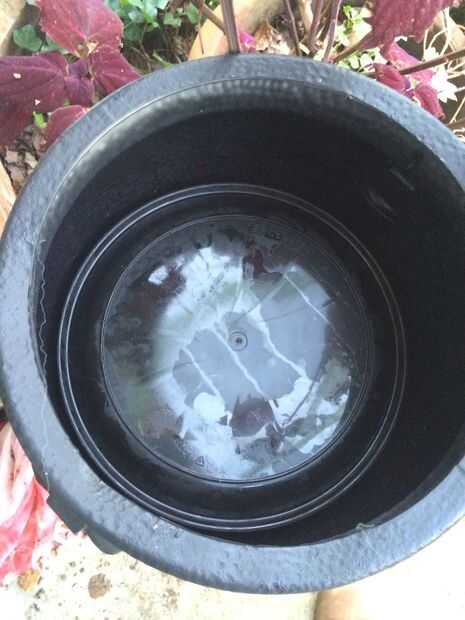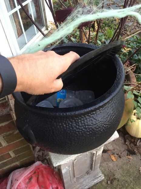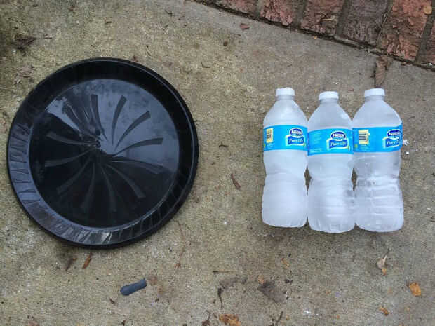 2. un plato de plástico negro sólo lo suficientemente grande como para caber dentro de la boca del caldero