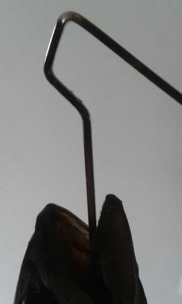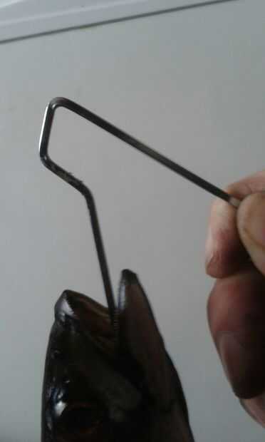 Mientras que caballa parece ser lo suficientemente sólido para este sistema de suspensión, truchas no son sag por el eje del. Después de haber acortado el eje de la misma manera forman un segundo gancho para apoyar la trucha por la mandíbula, así.