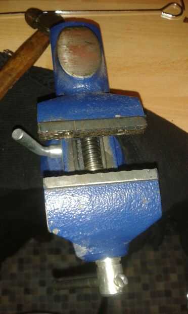 Un mandril de acero redondo en este caso una broca de 20mm (aproximadamente 3/4") de la barra seleccionado de la bandeja de desecho. Un pequeño vicio.