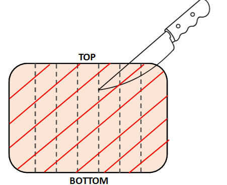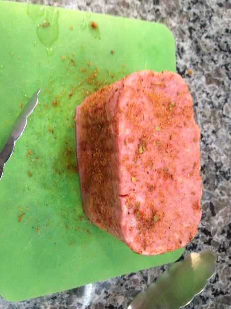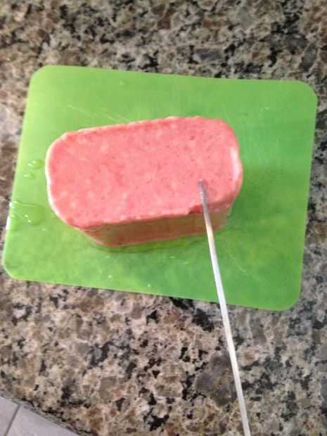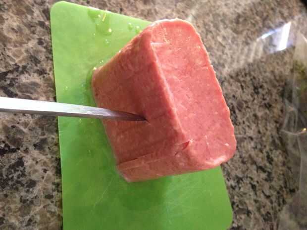 2. corte 1/4 en profundo los canales cada 1/4 en el SPAM (canales de sabor)