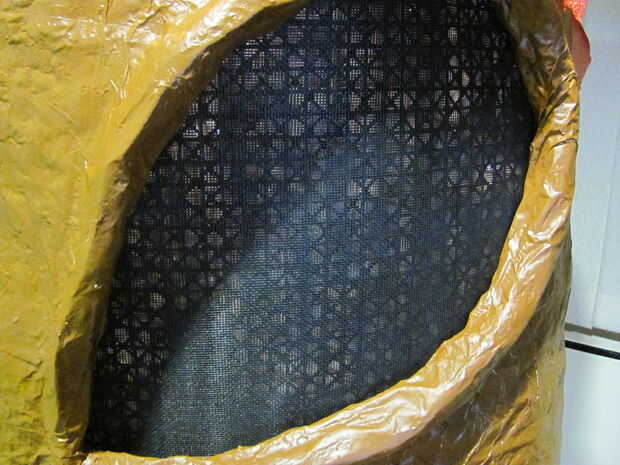 Fijar estas piezas dentro del traje que cubre la abertura de cada ojo. Recomiendo usar velcro para pegarlas para tenerlas fácilmente mientras que usted está usando el traje.