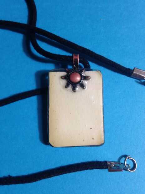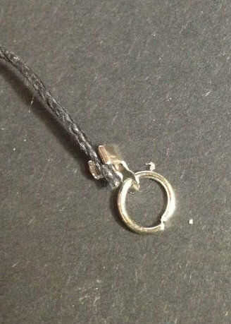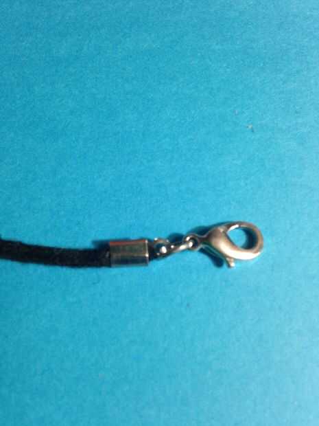 Si usted está haciendo un collar, una vez seca su colgante, puede seleccionar su cadena, cordón y resbálelo a través de la fianza de joyería. Normalmente utilizo cuerda de cuero negro. Para terminar la pieza añado casquillos de extremo de cable en cada extremo y utilizar una herramienta de abrazadera de joyería para empotrar las tapas.