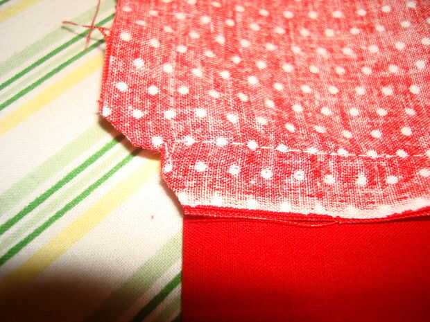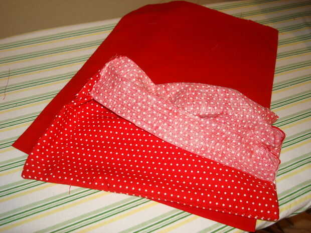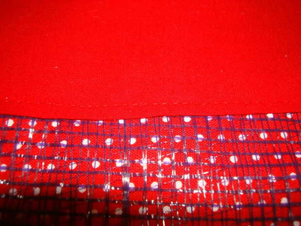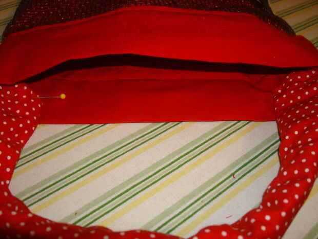 Simplemente hice 2 bolsas. Forro de un bolso y una bolsa impresa. Coloque la bolsa de forro dentro del bolso impreso y (ellos) colocado dentro de la bolsa de cebolla y doblado sobre el dobladillo de 1/4 de pulgada y dobla otra vez a 1 1/2 pulgadas y cosido en el dobladillo terminado en la apertura. La bolsa de cebolla era el patrón.