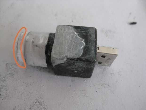 Ahora pegue el tornillo en el interior del agujero de la parte 2. Asegurarse que la unidad flash usb es indoblegable.