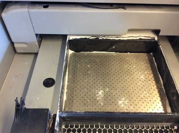 Ya que limpiar la impresora abre la puerta utilizando la manilla de la astilla, es pesada y diapositivas, asegúrese de que nada está sentado encima de la máquina que puede caerse.