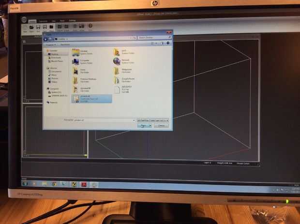 Ahora vuelve a la interfaz 3DPrint, en la ficha Inicio "abrir" un archivo. He abierto una impresión monocroma de un reciclado.
