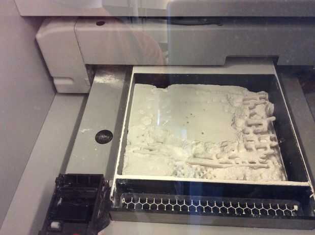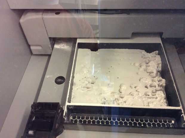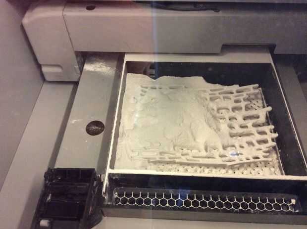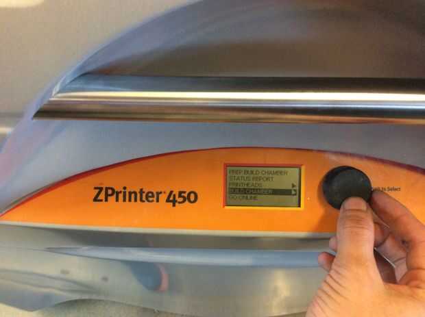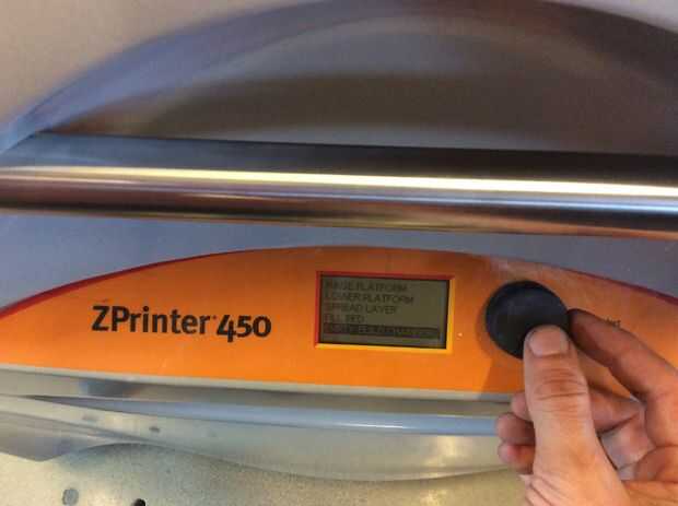 Woohoo! Realiza tu impresión! La máquina no parece mucho, pero la interfaz contare que la impresión está lista. Si su impresión es robusta que se puede utilizar la rutina de auto-depowdering en la impresora. Esto automáticamente es quitar todo el polvo alrededor de la parte y revelarlo estilo momia!