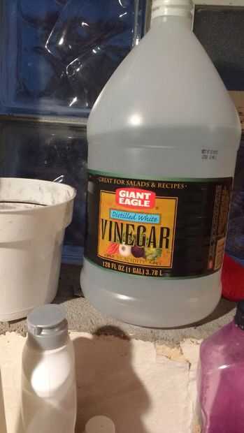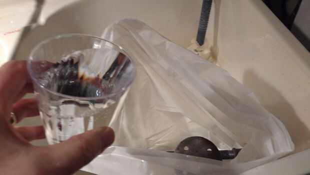 Luego tirar todo en una bolsa sobre una taza de vinagre blanco. Desmontar las piezas primero. Dejarlos durante una hora.